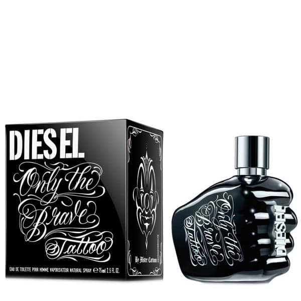 عطر ادکلن دیزل اونلی بریو تاتو-مشتی مشکی-Diesel Only The Brave Tattoo، با سایه روشن های بکار رفته بر روی بطری خود محصولی منحصر به فرد و جذاب برای آقایان می باشد . طرح و رنگ به کار رفته در بطری این محصول برگرفته از استایلی به نام La Graffiti است . Renzo Rosso مالک کمپاتی دیزل علاقمند به نگارش و طرح بر روی بدن خود بود به همین دلیل اولین تتوی خود یعنی R.R را در همان سال های ابتدایی تاسیس این کمپانی ، انجام داد و بعدها شعار Only The Brave را بروی مچ پایش و بعد از آن ، عبارت Mohawk بروی دستش که لوگوی هندی بود را طرح زد . او می گوید که : من ایده ی طراحی و نوشتن بروی بدن را دوست دارم . همه ی ما بدون هیچ علامت و نشانه ای به دنیا می آییم و فکر می کنم اگر نشانه هایی را در بدنی که به ما داده شده به جا بگذاریم جذاب و خاص می شود . از جمله مواد بکار رفته در ترکیباتش می توان به تنباکو ، نت های چوبی ، بنزویین و فلفل سیاه اشاره کرد .