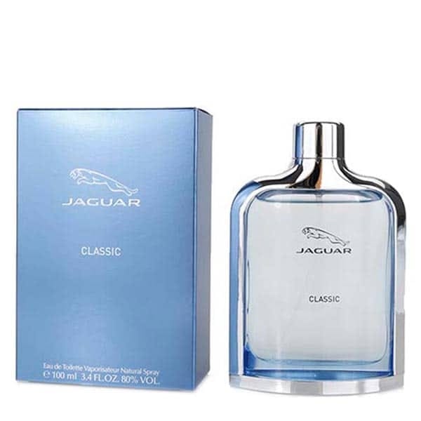عطر ادکلن جگوار کلاسیک آبی-Jaguar Classic Blue، با رایحه ای خنک و ملایم حاصل انواع مرکبات ، نیلوفر آبی ، ریحان و شکوفه پرتقال موجود در ترکیباتش انتخاب عالی برای فصل بهار می باشد . این عطر دنیایی از حس های خوب ، آزادی ، سرزندگی ، تازگی و طراوت را با خود به ارمغان می آورد . روی بطری کلاسیک بلو، نشان تجاری آشنای جگوار به چشم میخورد. در پایین این نشان، عبارت Classic با رنگ تیره بهخوبی دیده میشود. مایع آبیرنگ درون بطری از روی شیشهی شفاف آن بهوضوح نمایان است. دور شیشه را یک قاب فلزی احاطه کرده است. این طرح شامل در بطری هم میشود. این قطعات به رنگ نقرهای بوده و درخشش خاصی دارند. پس از اسپریکردن جگوار کلاسیک بلو روی پوست و محل نبضتان متوجه بوی پرتقال، سرو کوهی، اسطوخودوس، پرتقال ماندارین، ریحان، گل ستارهای و نارنج خواهید شد. این ترکیب شیرین و تند، شادی و هیجان را به شما منتقل میکند. پس از مدتی، این نتهای آغازی جای خود را به نتهای میانی خواهند داد. نتهای میانی از گل نیلوفر و شکوفهی پرتقال و زنجبیل تشکیل شدهاند. این ترکیب تند و شیرین، اثر نتهای آغازی را دوچندان میکند. با گذشت زمان، این نتها جای خود را به نتهای پایانی میدهند. نتهای پایانی شامل چوب صندل، صمغ بنزویین و مشک هستند.