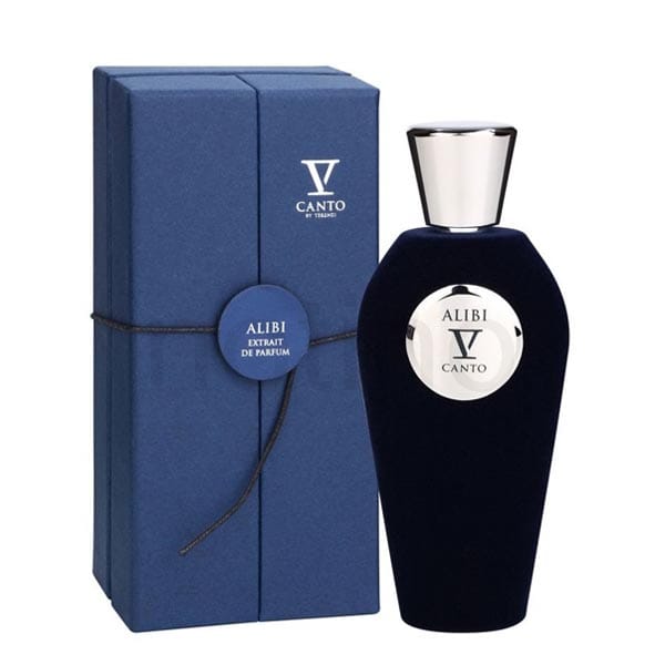 عطر ادکلن وی کانتو الیبی-V Canto Alibi ،عطری است خنک که رایحه ابتدایی آن با حسی تند و تیز، شاداب و سبز حاصل از ترکیب رایحه مرکبات، نعنای هندی و برگ های درخت کاج آغاز می شود که حس خاکی مانند ملایمی به دلیل حضور گیاه خس خس و همینطور نعنای هندی نیز به همراه دارد. با گذر زمان رایحه مرکباتی محو شده و عطر کمی شیرین می شود. همزمان با این تغییر حس خاکی عطر با قوی تر شدن خس خس و نعنای هندی قوی تر شده و حالتی چوبی مانند نیز به خود می گیرد که سبب جدی تر شدن و شکیل تر شدن رایحه می گردد.